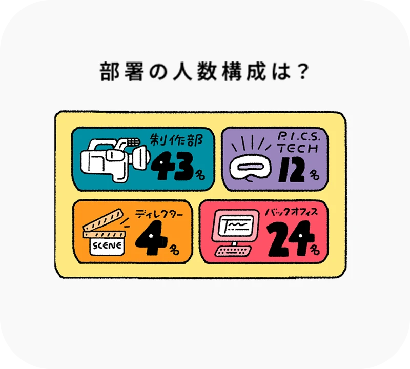 制作部 43名、P.I.C.S. TECH 12名、