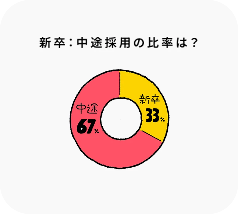 新卒33%、中途67%