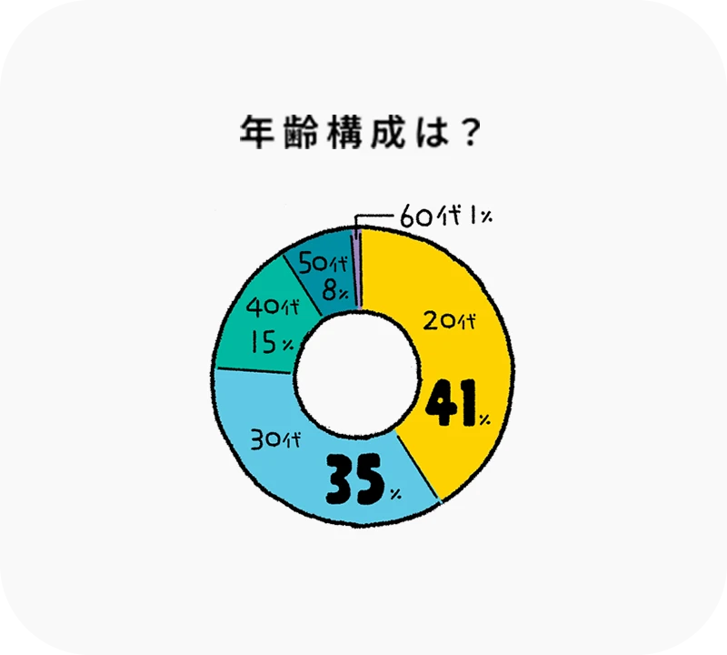 20代 41%、30代 35%、40代 15%、