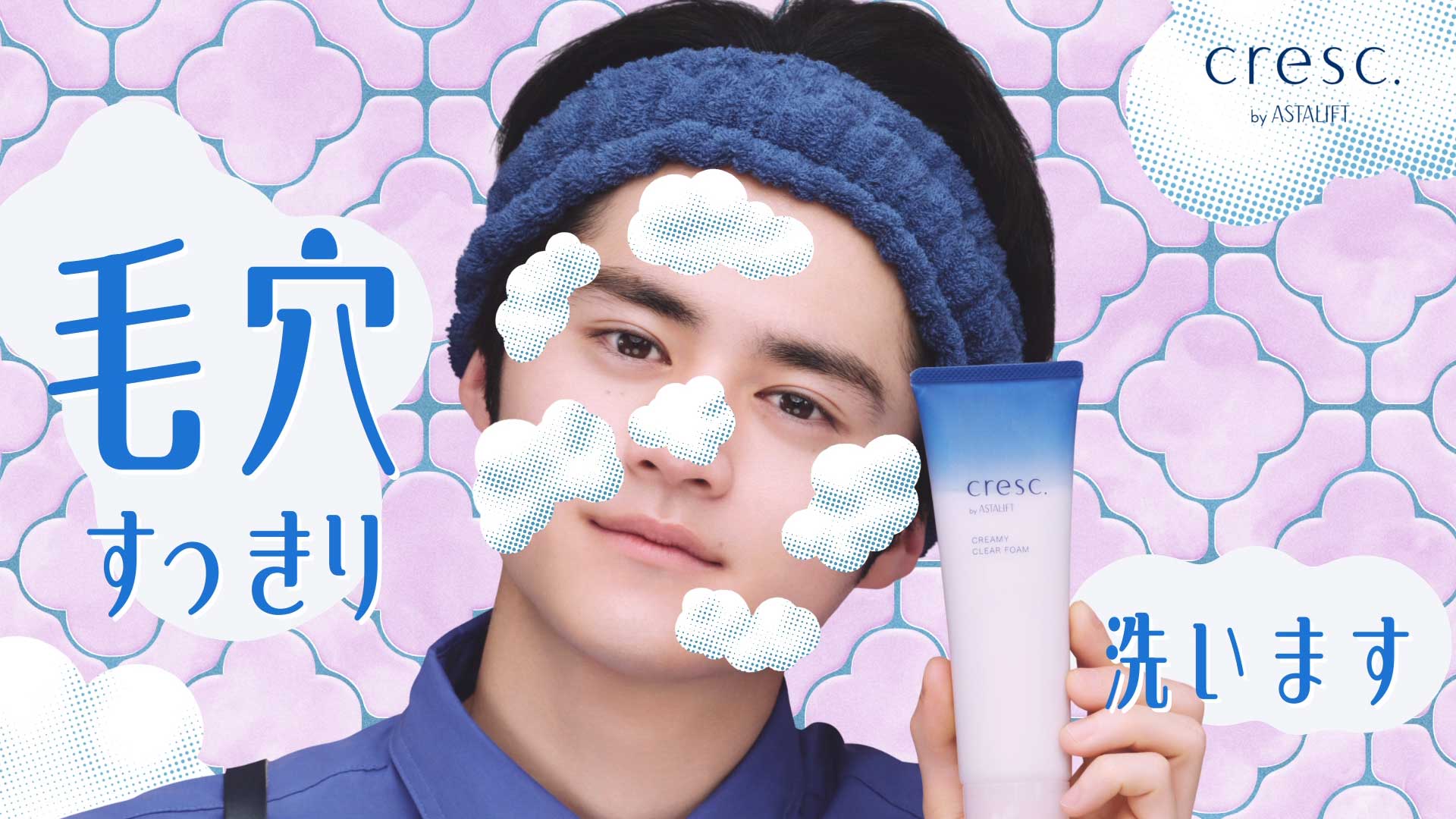 cresc. by ASTALIFT「アトリエクレスク スキンケアレッスン」ムービー & グラフィックをP.I.C.S.にて制作しました。 「アトリエクレスク」の新米店長に扮する鈴鹿央士さんの表情と、同ブランド・製品の特徴と使用方法を表現した歌と共に伝えるHow to動画となっています。