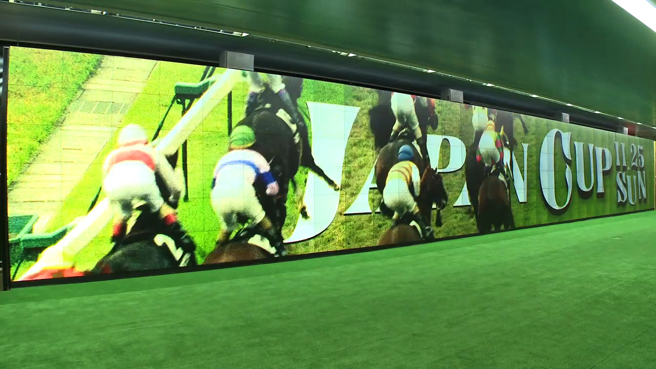 2012年11月19日~25日の一週間、東京メトロ丸ノ内線の新宿駅構内に、14m×2mの高解像度のマイクロタイルを使用したデジタルサイネージを設置。 競馬場を再現し、等身大の競走馬の大きさや速度を体感できるというキャンペーンを行いました。
