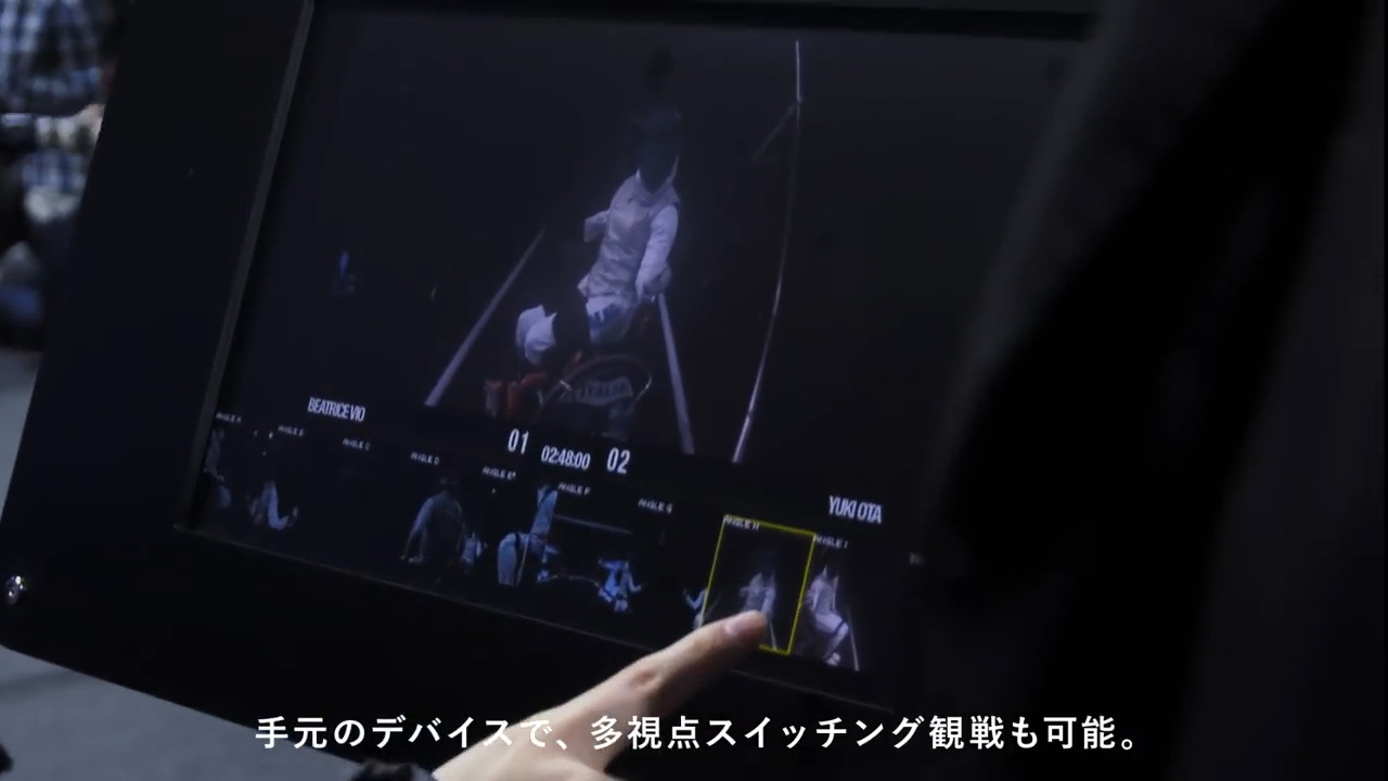リオ2016パラリンピック女子車いすフェンシング金メダリストであるベアトリーチェ・マリア・ヴィオ選手と太田雄貴氏のエキシビジョンマッチを複数台のカメラで様々な視点から撮影し、その複数の映像を、東京スカイツリー スカイアリーナにある多様なモニターに同時に伝送して映し出すことで、まるでその場でフェンシングの試合が行われているかのようなマルチアングルでの観戦を提案。