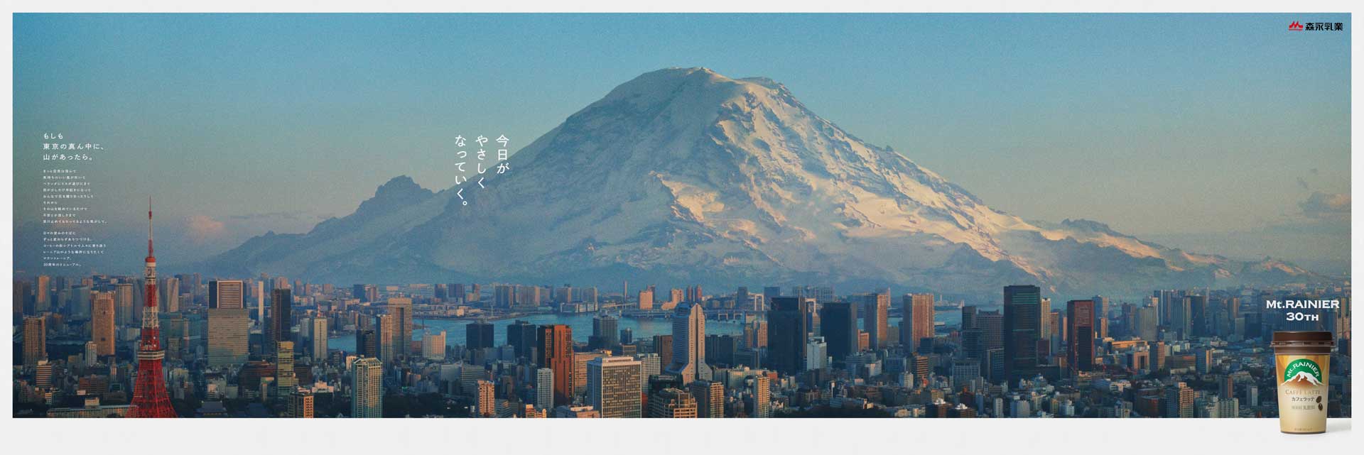 森永乳業 マウントレーニア「もしも東京の真ん中に山があったら」篇グラフィックをP.I.C.S.にて制作しました。