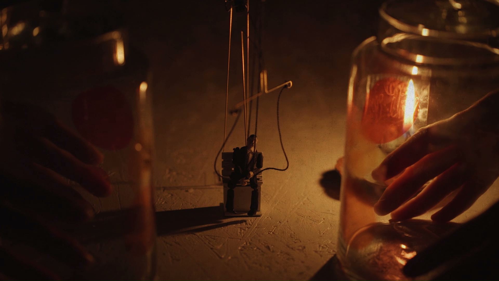 暗闇で自分が照らし出す手元しか見えないという行為が、「探す」というアクションをより強く印象付けています。電気で作られる光よりも、本当の「炎」を使うことで、より有機的な印象が得られました。